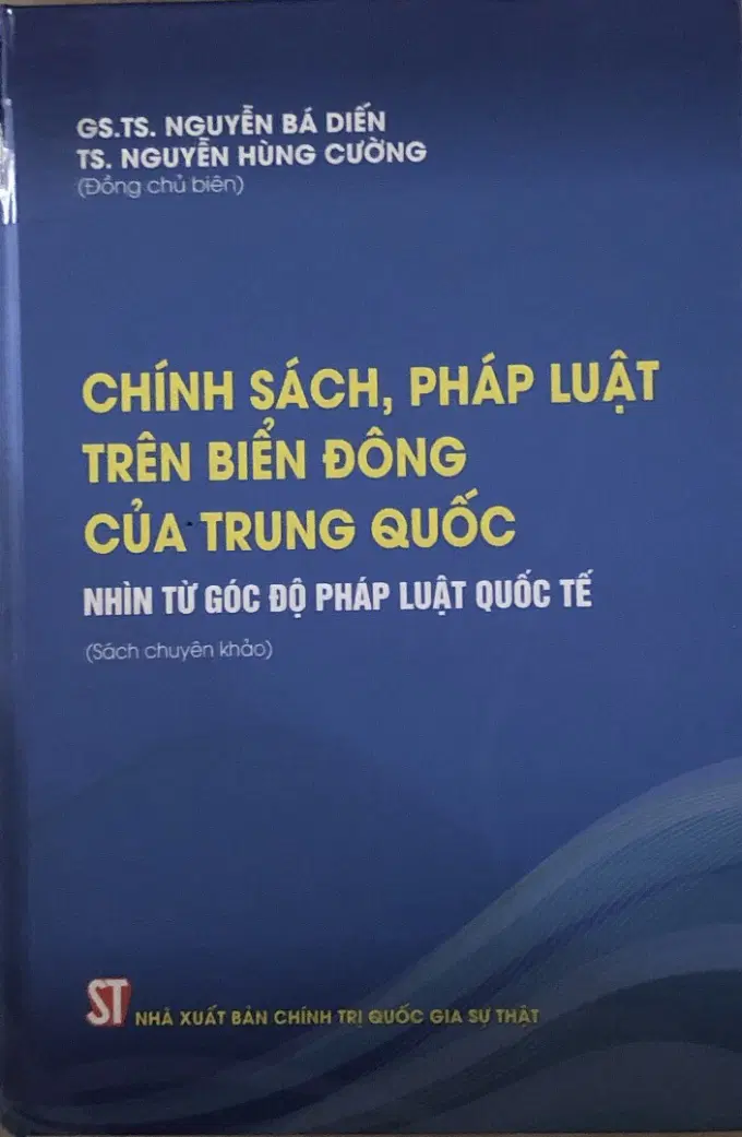 Cuốn sách “Chính sách, pháp luật trên biển Đông của Trung Quốc nhìn từ góc độ pháp luật quốc tế” của GS. TS. Nguyễn Bá Diến và TS. Nguyễn Hùng Cường, với dung lượng 451 trang, được Nhà xuất bản Chính trị quốc gia Sự thật xuất bản năm 2021. Cuốn sách được biên soạn nhằm giới thiệu với bạn đọc những nghiên cứu, đánh giá của các tác giả, đã được đóng góp ý kiến bởi các chuyên gia về luật biển, đối với các văn bản được phía Trung Quốc đơn phương xây dựng và công bố. Bằng những đánh giá, lập luận sắc bén dựa trên căn cứ nghiên cứu khoa học, khách quan, các tác giả đã làm rõ quá trình Trung Quốc sử dụng pháp lý làm công cụ để từng bước “hợp thức hóa" yêu sách chủ quyền và tuyên truyền Luật Biển theo quan điểm của Trung Quốc và tính bất hợp lý, không tuân thủ pháp luật quốc tế trong các chính sách, pháp luật về Biển Đông của Trung Quốc. Qua đó, củng cố thêm tính thuyết phục và vững chắc về cơ sở pháp lý của Việt Nam trong đấu tranh bảo vệ chủ quyền, quyền chủ quyền và quyền tài phán ở Biển Đông, giữ vững đường lối của Đảng ta: “Kiên quyết, kiên trì bảo vệ chủ quyền, lãnh thổ, lợi ích quốc gia, dân tộc trên biển, trên không và trên bộ".