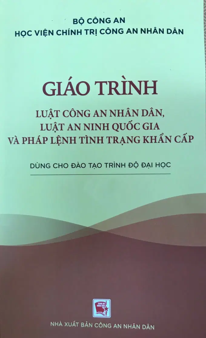 Trong Chương trình đào tạo trình độ đại học hệ chính quy của Học viện Chính trị Công an nhân dân, Luật Công an nhân dân, Luật An ninh quốc gia và Pháp lệnh tình trạng khẩn cấp là học phần bắt buộc thuộc khối kiến thức cơ sở, kiến thức liên ngành bao gồm 02 tín chỉ. Nhằm đáp ứng nhu cầu giảng dạy, nghiên cứu, học tập; để triển khai thực hiện chương trình đào tạo, Giám đốc Học viện Chính trị Công an nhân dân đã ban hành Quyết định số 870/QĐ-T29-P2, ngày 17/5/2028 ban hành Đề cương chi tiết học phần Luật Công an nhân dân, Luật An ninh quốc gia và Pháp lệnh tình trạng khẩn cấp. Giáo trình do Trung tướng, PGS.TS. Phan Xuân Tuy, Giám đốc Học viện chủ biên cùng các thành viên tham gia biên soạn là một số giảng viên Khoa Luật của Học viện.