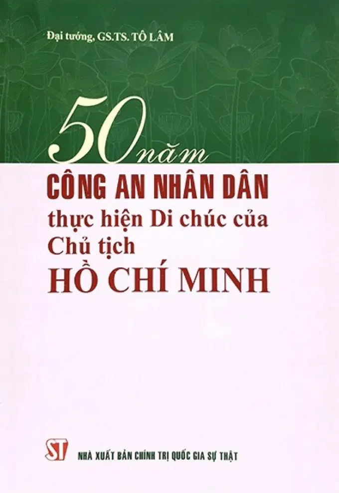 Nhân dịp kỷ niệm 50 năm học tập và làm theo Di chúc của Chủ tịch Hồ Chí Minh trong toàn Đảng, toàn quân và toàn dân ta, Nhà xuất bản Chính trị quốc gia Sự thật trân trọng giới thiệu cuốn sách “50 năm Công an nhân dân thực hiện Di chúc của Chủ tịch Hồ Chí Minh” của Đại tướng, GS.TS. Tô Lâm - Ủy viên Bộ Chính trị, Bí thư Đảng ủy Công an Trung ương, Bộ trưởng Bộ Công an. Cuốn sách với dung lượng 198 trang, được xuất bản năm 2019.