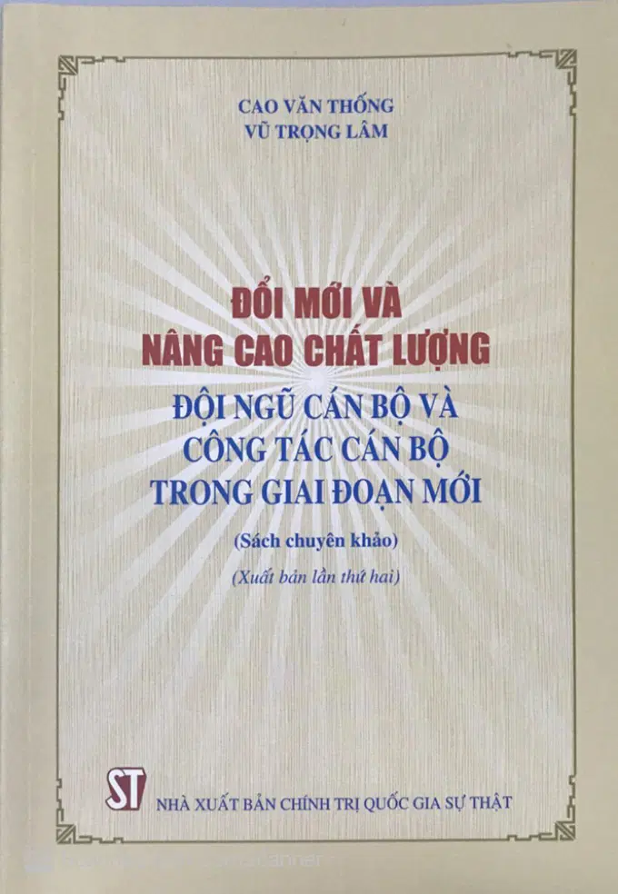 Sách chuyên khảo “Đổi mới và nâng cao chất lượng đội ngũ cán bộ và công tác cán bộ trong giai đoạn mới” do đồng chí Cao Văn Thống, Ủy viên Ủy ban Kiểm tra Trung ương Đảng và PGS.TS Vũ Trọng Lâm, Phó Giám đốc, Phó Tổng biên tập Nhà xuất bản Chính trị quốc gia sự thật đồng chủ biên, được Nhà xuất bản Chính trị quốc gia sự thật phát hành năm 2019.