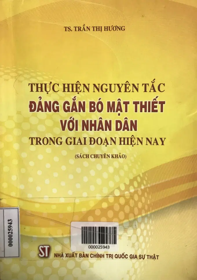Đảng Cộng sản Việt Nam từ khi ra đời đến nay luôn quan tâm xây dựng mối quan hệ gắn bó mật thiết với nhân dân. Trước yêu cầu mới của tình hình cách mạng và kinh nghiệm thực tiễn, Đại hội đại biểu toàn quốc lần thứ X của Đảng đã chính thức đưa vấn đề này lên thành một nguyên tắc tổ chức, hoạt động của Đảng. Đến nay, việc thực hiện những nguyên tắc Đảng gắn bó mật thiết với nhân dân trong thực tiễn vẫn còn gặp nhiều khó khăn, hạn chế, bởi trong Đảng chưa có văn bản hướng dẫn, quy định cụ thể thực hiện nguyên tắc này. Để góp phần tìm hiểu rõ hơn về vấn đề này, Nhà xuất bản Chính trị quốc gia sự thật xuất bản cuốn sách “Thực hiện nguyên tắc Đảng gắn bó mật thiết với nhân dân trong giai đoạn hiện nay” của TS. Trần Thị Hương.