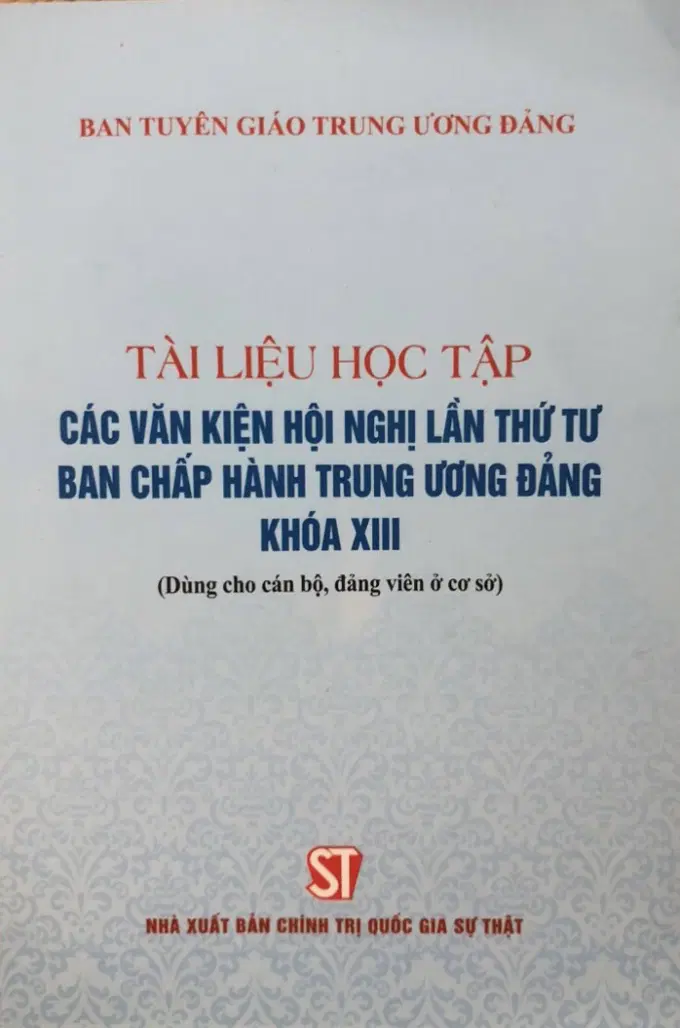 Để giúp các cấp, các ngành học tập, quán triệt và triển khai thực hiện Nghị quyết Hội nghị lần thứ tư Ban Chấp hành Trung ương Đảng khóa XIII, Ban Tuyên giáo Trung ương Đảng tổ chức biên soạn, phối hợp với Nhà xuất bản Chính trị quốc gia Sự thật xuất bản các tài liệu: Tài liệu học tập các văn kiện Hội nghị lần thứ tư Ban Chấp hành Trung ương Đảng khóa XIII (Dùng cho cán bộ, đảng viên ở cơ sở); Tài liệu hỏi - đáp về các văn kiện Hội nghị lần thứ tư Ban Chấp hành Trung ương Đảng khóa XIII (Dùng cho đoàn viên, hội viên các tổ chức chính trị - xã hội và tuyên truyền trong nhân dân); Tài liệu nghiên cứu các văn kiện Hội nghị lần thứ tư Ban Chấp hành Trung ương Đảng khóa XIII (Dùng cho cán bộ chủ chốt và báo cáo viên),