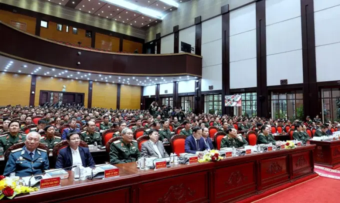 | Đại tướng Lương Cường - Ủy viên Bộ Chính trị, Ủy viên Thường vụ Quân ủy Trung ương, Chủ nhiệm Tổng cục Chính trị Quân đội nhân dân Việt Nam phát biểu chỉ đạo tại Hội thảo. |