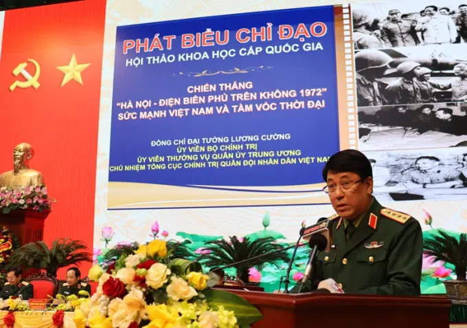 Phát biểu chỉ đạo tại Hội thảo, Đại tướng Lương Cường, Ủy viên Bộ Chính trị, Ủy viên Thường vụ Quân ủy Trung ương, Chủ nhiệm Tổng cục Chính trị Quân đội nhân dân (QĐND) Việt Nam nhấn mạnh: Cách đây tròn 50 năm, vào những ngày cuối tháng 12/1972, cả thế giới phải kinh ngạc, kính phục chứng kiến uy danh “pháo đài bay B-52” - biểu tượng sức mạnh của không lực Hoa Kỳ bị đập tan trên bầu trời Hà Nội. Mảnh đất Thăng Long - Đông Đô - nơi lắng hồn núi sông ngàn năm lại ghi thêm một chiến công hiển hách trong những chiến công vĩ đại nhất của dân tộc Việt Nam ở thế kỷ 20, đó là “Chiến thắng Hà Nội - Điện Biên Phủ trên không”.
