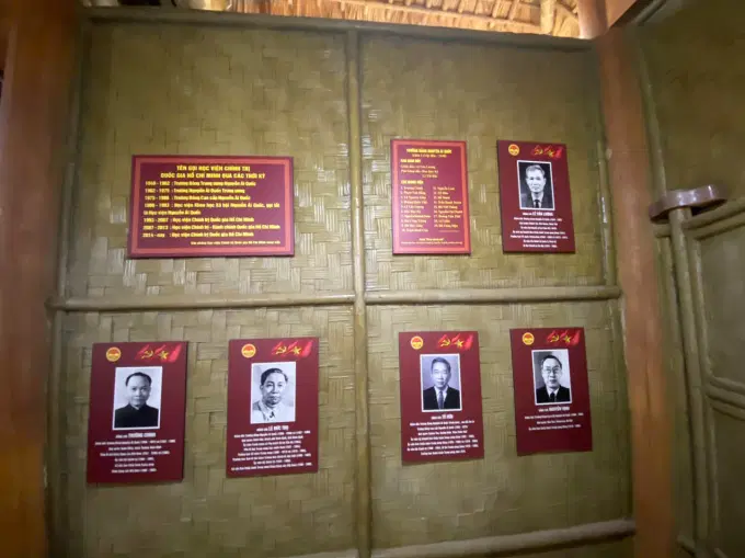 Đoàn Công tác đã đến thăm quan di tích Trường Đảng Nguyễn Ái Quốc (nay là Học viện Chính trị Quốc gia Hồ Chí Minh) ở Làng Luông (xã Bình Thành, huyện Định Hóa). Nơi đây, năm 1949, Trường Đảng Nguyễn Ái Quốc đã mở 02 khóa học tại cơ sở đầu tiên của trường: Khóa I (2/1949) với 40 học viên; khóa II (9/1949) với 175 học viên. Chủ tịch Hồ Chí Minh đã đến thăm trường ngay những ngày học đầu tiên của khóa học và nói chuyện với lớp học. Người đã ghi trên trang đầu cuốn Sổ vàng của nhà trường những lời dạy vô cùng quý giá:“Học để làm việc, làm người, làm cán bộ. Học để phụng sự đoàn thể, phụng sự giai cấp và nhân dân, phụng sự Tổ quốc và nhân loại. Muốn đạt mục đích, thì phải cần, kiệm, liêm, chính, chí công, vô tư”. Lời dạy đó của Người đến nay vẫn còn nguyên giá trị, là tư tưởng chỉ dẫn quan trọng trong đào tạo, bồi dưỡng cán bộ.