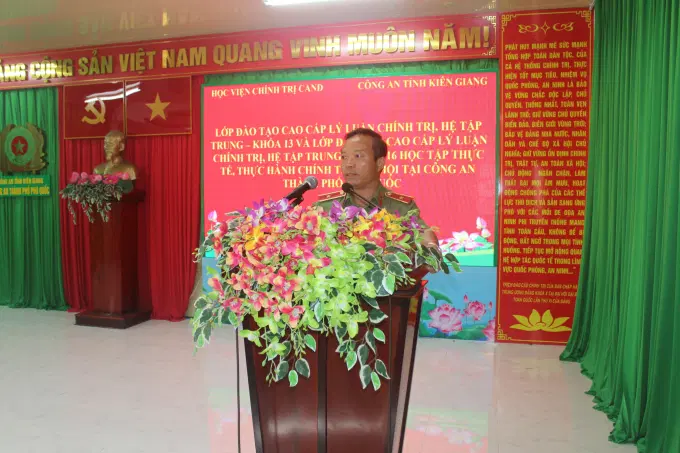 Thay mặt Đảng ủy, Ban Giám đốc Công an tỉnh Kiên Giang, Đại tá Trần Văn Cung, Phó Giám đốc Công an tỉnh cho biết, căn cứ vào kế hoạch tổ chức học tập thực tế, thực hành chính trị - xã hội của lớp đào tạo trình độ cao cấp lý luận chính trị, Ban Giám đốc Công an tỉnh đã chỉ đạo các đơn vị chức năng khẩn trương chuẩn bị các điều kiện tốt nhất về cơ sở vật chất, lựa chọn các báo cáo viên có nhiều kinh nghiệm, xây dựng các chuyên đề phù hợp để thông tin toàn diện, đầy đủ về một số mặt công tác của Công an tỉnh, đáp ứng yêu cầu của lớp học. Đồng thời mong muốn trên cơ sở những kiến thức được trao đổi, các học viên sẽ áp dụng linh hoạt, có hiệu quả vào thực tiễn công tác tại đơn vị, góp phần nâng cao chất lượng đào tạo của Học viện Chính trị Công an nhân dân.