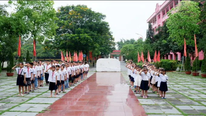 Tiết mục văn nghệ chào mừng buổi lễ do các cháu thiếu nhi lớp học biểu diễn.