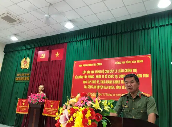 Thực hiện Kế hoạch số 1875/KH-T03-P3, ngày 27/9/2024 của Giám đốc Học viện Chính trị CAND, từ ngày 14/10/2024 đến ngày 19/10/2024, Học viện đã tổ chức cho lớp Cao cấp lý luận chính trị, hệ không tập trung khóa 16 tổ chức tại Công an tỉnh Kon Tum đi học tập nghiên cứu, thực tế, thực hành chính trị - xã hội tại địa bàn tỉnh Tây Ninh, tỉnh Đồng Nai và Thành phố Hồ Chí Minh. Được sự ủy quyền của đồng chí Giám đốc Học viện, đồng chí Đại tá, TS Trần Văn Tuấn, Ủy viên Ban Thường vụ Đảng ủy, Phó Giám đốc Học viện làm Trưởng đoàn. Tham gia Đoàn công tác có: đại diện lãnh đạo Phòng Quản lý đào tạo và bồi dưỡng nâng cao, đại diện lãnh đạo Phòng Quản lý học viên và toàn thể học viên lớp học.