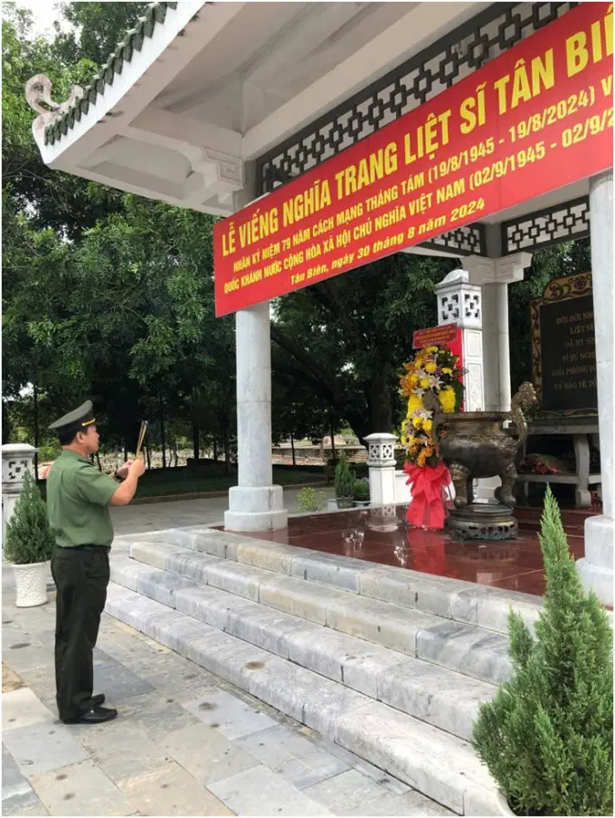 Dâng hương, dâng hoa viếng nghĩa trang liệt sĩ tại huyện Tân Biên, tỉnh Tây Ninh (Nghĩa trang liệt sĩ Đồi 82) là một trong 3 nghĩa trang lớn nhất của cả nước. Đây là nơi an nghỉ của hơn 14.000 Anh hùng Liệt sĩ từ mọi miền Tổ quốc đã hy sinh trong cuộc kháng chiến chống Mỹ cứu nước và làm nghĩa vụ quốc tế; đây cũng là nơi quy tập hồi hương hàng ngàn hài cốt quân tình nguyện Việt Nam hy sinh khi thực hiện nghĩa vụ quốc tế giúp nước bạn Campuchia.