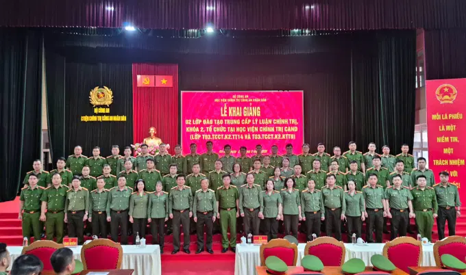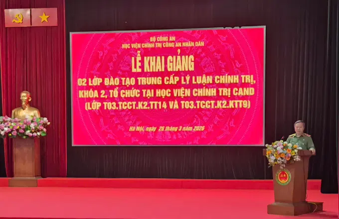 Ngày 26/3/2026, Học viện Chính trị CAND đã trang trọng tổ chức lễ khai giảng các lớp đào tạo trình độ trung cấp lý luận chính trị, khóa 2, năm học 2025 - 2026 (lớp T03.TCCT.K2.TT14 và T03.TCCT.K2.KTT9). Đồng chí PGS.TS, Trung trướng, NGƯT Phan Xuân Tuy, Bí thư Đảng ủy, Giám đốc Học viện chủ trì buổi lễ. Tham dự buổi lễ có đại diện các đơn vị thuộc Học viện cùng toàn thể học viên 02 lớp học.