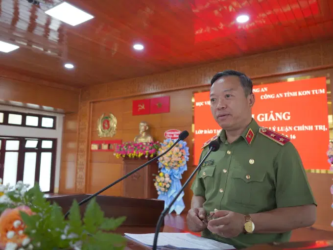 Thực hiện chỉ tiêu đào tạo, bồi dưỡng cán bộ CAND năm học 2022 – 2023, ngày 04/8/2023, Học viện Chính trị CAND đã phối hợp với Công an tỉnh Kon Tum tổ chức khai giảng lớp đào tạo cao cấp lý luận chính trị hệ không tập trung khóa 16 tổ chức tại Công an tỉnh. Đồng chí Trung tướng, PGS.TS Phan Xuân Tuy, Bí thư Đảng ủy, Giám đốc Học viện Chính trị CAND dự và chủ trì lễ khai giảng. Tham dự lễ Khai giảng, về phía tỉnh Kon Tum có: đồng chí Thượng tá, Tiến sĩ Lê Xuân Thủy, Ủy viên Ban Thường vụ Đảng ủy, Phó Giám đốc Công an tỉnh; đồng chí Thao Hồng Sơn, Tỉnh ủy viên, Phó Trưởng ban Thường trực Ban Tổ chức Tỉnh ủy; đồng chí Nguyễn Quang Thủy, Phó Trưởng ban Tuyên giáo Tỉnh ủy; đồng chí Nguyễn Thọ Hòa, Phó Hiệu trưởng Trường Chính trị tỉnh Kon Tum; đại diện lãnh đạo các đơn vị chức năng của Học viện Chính trị CAND, Công an tỉnh Kon Tum và học viên lớp học.