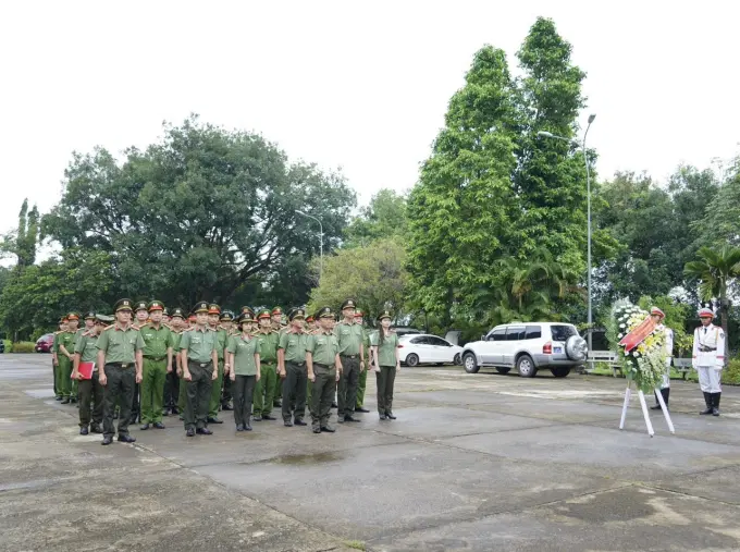 Trong chương trình Khai giảng lớp học, nhân dịp kỷ niệm 76 năm ngày Thương bình - Liệt sĩ (27/7/1947 - 27/7/2023), Đoàn Công tác của Học viện cùng với Công an tỉnh Kon Tum và học viên lớp học đã thành kính dâng hương, dâng hoa tưởng nhớ các anh hùng, liệt sĩ đã hi sinh tại Khu di tích Lịch sử Quốc gia Ngục Kon Tum - Nơi đây đã ghi ơn những tấm gương bất khuất, ý chí đấu tranh kiên cường của các chiến sĩ cách mạng đã hy sinh vì tổ quốc trong thời kỳ trước cách mạng tháng tám trên mảnh đất Kon Tum.