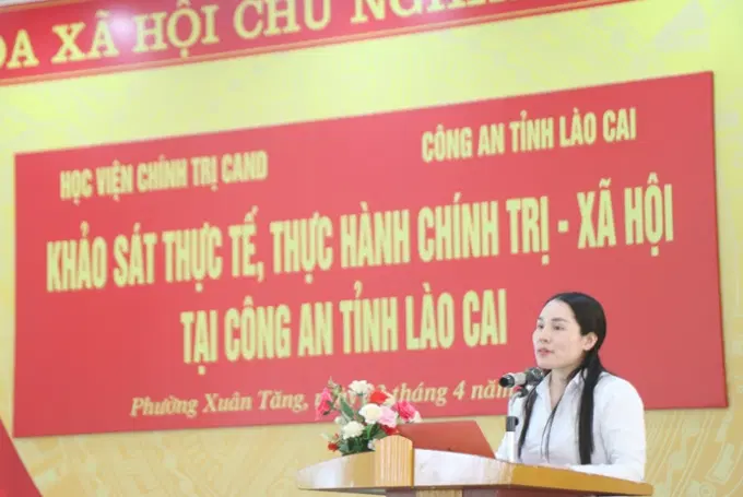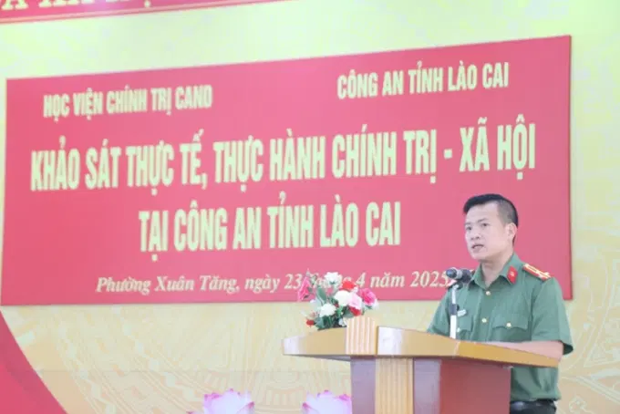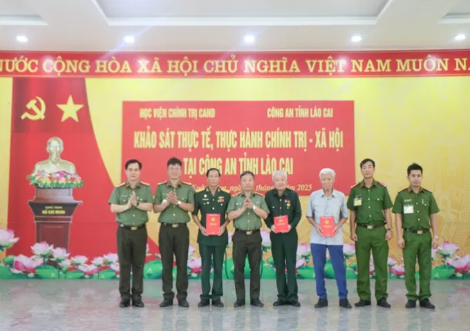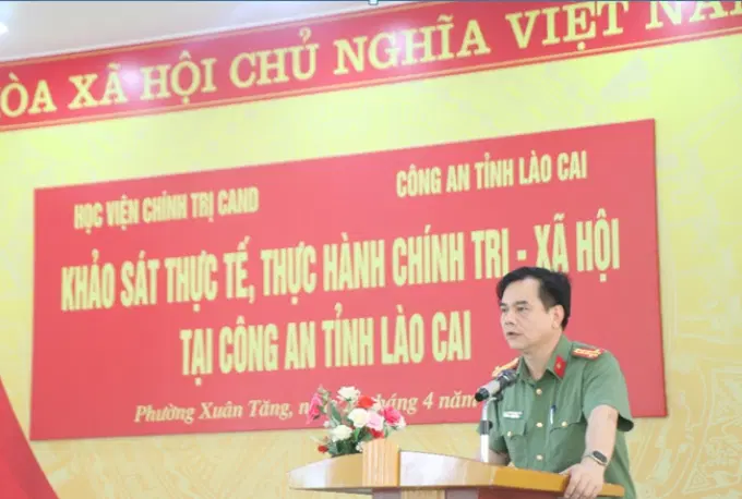 Ngày 23/4/2025, Học viện Chính trị CAND phối hợp với Công an tỉnh Lào Cai tổ chức Đoàn khảo sát thực tế, thực hành chính trị - xã hội tại Công an tỉnh. Hoạt động khảo sát nằm trong chương trình công tác của Tiểu ban Lý luận Chính trị và xây dựng lực lượng CAND, chương trình đào tạo, bồi dưỡng lý luận chính trị tại Học viện Chính trị CAND; đồng thời trao đổi kinh nghiệm, tổng kết các vấn đề lý luận và thực tiễn công tác bảo đảm an ninh, trật tự tại địa bàn.