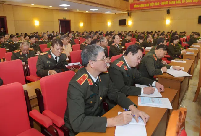 Các đại biểu dự hội nghị tại điểm cầu Bộ Công an.