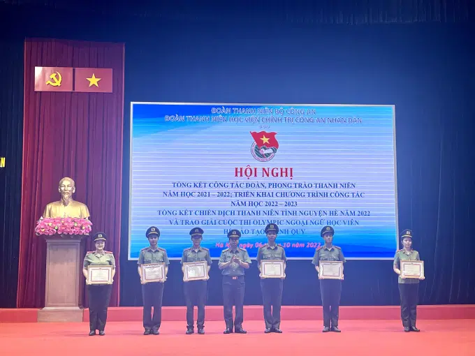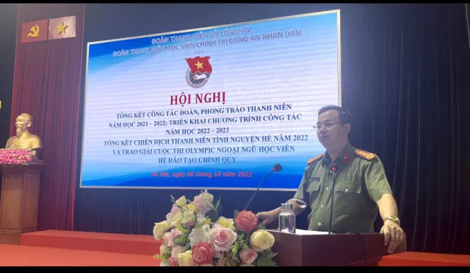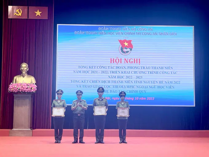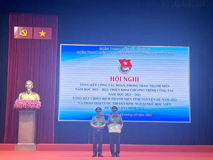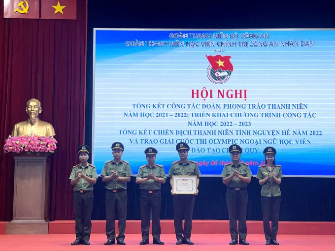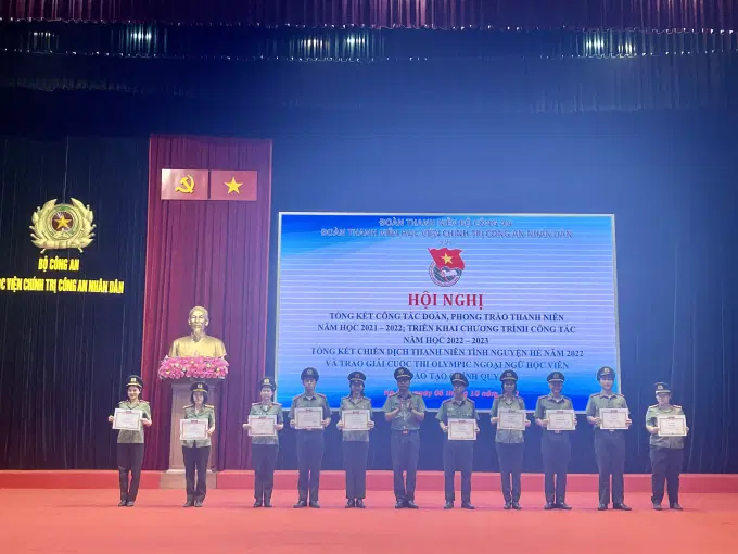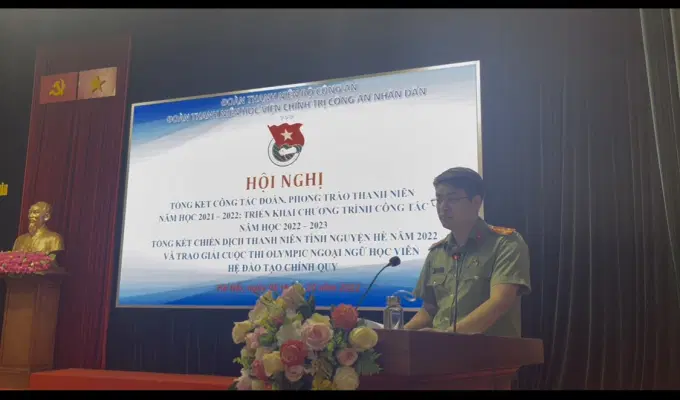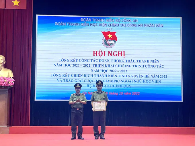 Ngày 06/10/2022, Đoàn Thanh niên Học viện Chính trị CAND tổ chức Hội nghị Tổng kết công tác Đoàn, phong trào thanh niên năm học 2021-2022; triển khai chương trình công tác năm học 2022-2023; tổng kết chiến dịch Thanh niên công an tình nguyện Hè 2022 và trao giải cuộc thi Olympic Ngoại ngữ học viên hệ đào tạo chính quy. Dự và chỉ đạo Hội nghị có đồng chí Đại tá Tống Văn Khuông, Uỷ viên Ban Thường vụ Đảng uỷ, Phó Giám đốc Học viện phụ trách các tổ chức quần chúng.