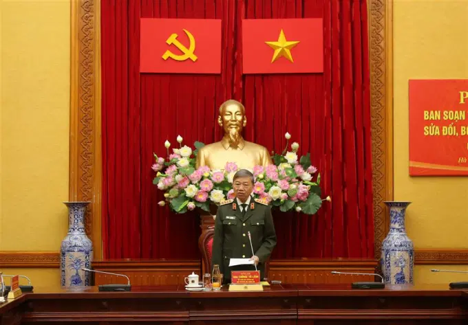 Sáng 13/02/2023, tại Hà Nội, Bộ Công an tổ chức phiên họp Ban soạn thảo, Tổ biên tập dự án Luật sửa đổi, bổ sung một số điều của Luật Công an nhân dân (CAND). Đại tướng Tô Lâm, Ủy viên Bộ Chính trị, Bộ trưởng Bộ Công an chủ trì phiên họp.