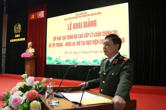 Sáng ngày 27/02/2023, Học viện Chính trị Công an nhân dân tổ chức Lễ khai giảng Lớp đào tạo trình độ cao cấp lý luận chính trị hệ tập trung khóa 40 mở tại Học viện Chính trị CAND. Đồng chí Trung tướng, PGS.TS Phan Xuân Tuy, Bí thư Đảng ủy, Giám đốc Học viện dự và phát biểu chỉ đạo; đồng chí Thiếu tướng, TS Nguyễn Như Lôi, Uỷ viên Ban Thường vụ Đảng ủy, Phó Giám đốc Học viện Chính trị CAND chủ trì buổi Lễ. Tham dự có: đại diện lãnh đạo các đơn vị chức năng thuộc Học viện Chính trị CAND cùng toàn thể học viên lớp học.