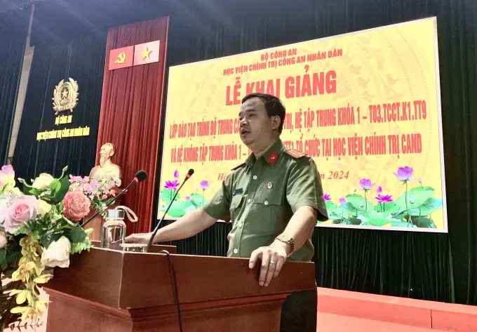 Thực hiện Kế hoạch số 1450/KH-T03-P6 ngày 25/7/2024 của Giám đốc Học viện Chính trị CAND về việc tổ chức nhập học và Khai giảng Lớp đào tạo trình độ trung cấp lý luận chính trị hệ tập trung khóa 1-T03.TCCT.K1.TT9 và hệ không tập trung khóa 1 - T03.TCCT.K1.KTT1,tổ chức tại Học viện CAND; chiều ngày 01/8/2024, Học viện Chính trị CAND đã long trọng triển khai tổ chức Lễ khai giảng 02 lớp học nêu trên. Đồng chí TS, Đại tá Tống Văn Khuông, Ủy viên Ban Thường vụ Đảng ủy, Phó Giám đốc Học viện Chính trị CAND dự và chủ trì buổi Lễ. Tham dự có đồng chí đại diện Cục Đào tạo; đại diện lãnh đạo các đơn vị chức năng thuộc Học viện Chính trị CAND và toàn thể học viên 02 lớp học.