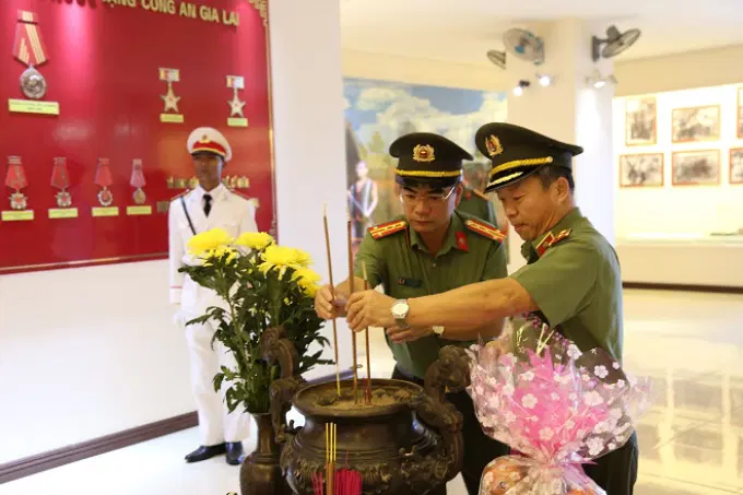 Đoàn công tác dâng hương, chụp ảnh lưu niệm tại Nhà Truyền thống Công an tỉnh Gia Lai