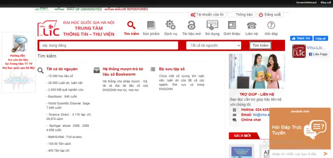 Website của Trung tâm Thông tin - Thư viện, Đại học Quốc gia Hà Nội