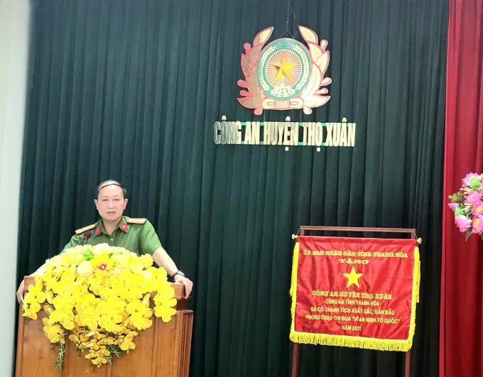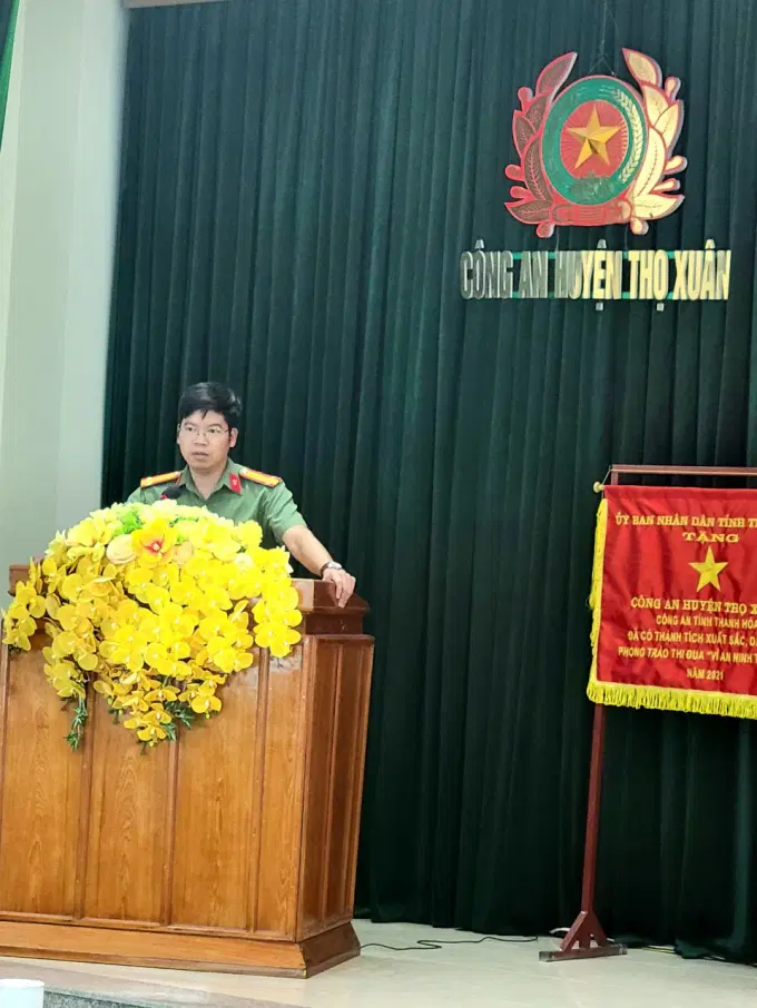 Thượng tá Trịnh Duy Niệm, Bí thư Đảng ủy, Trưởng Công an huyện Thọ Xuân phát biểu