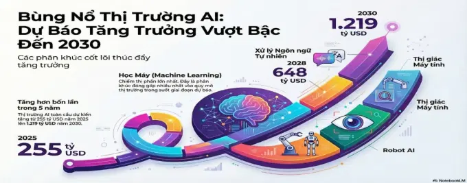Tác giả tự tổng hợp, thiết kế dựa theo nguồn: https://www.statista.com/chart/35510/ai-market-growth-forecasts-by-segment/ (10.2025)