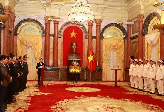Phát biểu giao nhiệm vụ đối với đồng chí Thứ trưởng Nguyễn Văn Thành và đồng chí Thứ trưởng Phạm Dũng, Chủ tịch nước Trương Tấn Sang nêu rõ: Đây là niềm vinh dự của hai đồng chí, cũng là niềm vui chung của lực lượng Công an nhân dân; đồng thời, là sự ghi nhận, đánh giá cao của Đảng, Nhà nước đối với công lao đóng góp, sự tiến bộ, trưởng thành của hai đồng chí và của lực lượng Công an nhân dân. Chủ tịch nước nhấn mạnh, được phong và thăng cấp bậc hàm Thượng tướng là niềm tự hào, vinh dự lớn nhưng trách nhiệm càng cao. Chính vì vậy, với vai trò là cán bộ lãnh đạo, chỉ huy cấp cao của lực lượng Công an nhân dân, trong thời gian tới hai đồng chí cần phát huy hơn nữa năng lực, trí tuệ của mình, cùng tập thể Đảng ủy Công an Trung ương và lãnh đạo Bộ Công an tiếp tục phát huy truyền thống vẻ vang của Công an nhân dân anh hùng, giữ vững phẩm chất đạo đức cách mạng, tuyệt đối trung thành với Đảng, với Tổ quốc, với nhân dân, hết lòng phụng sự Tổ quốc, phục vụ nhân nhân, thực hiện tốt lời dạy của Bác Hồ: Người làm tướng phải "Trí - Dũng - Nhân - Tín - Liêm - Trung" để luôn xứng đáng là người chỉ huy tài năng, mẫu mực, phấn đấu hoàn thành xuất sắc mọi nhiệm vụ mà Đảng, Nhà nước và nhân dân đã tin tưởng giao cho.