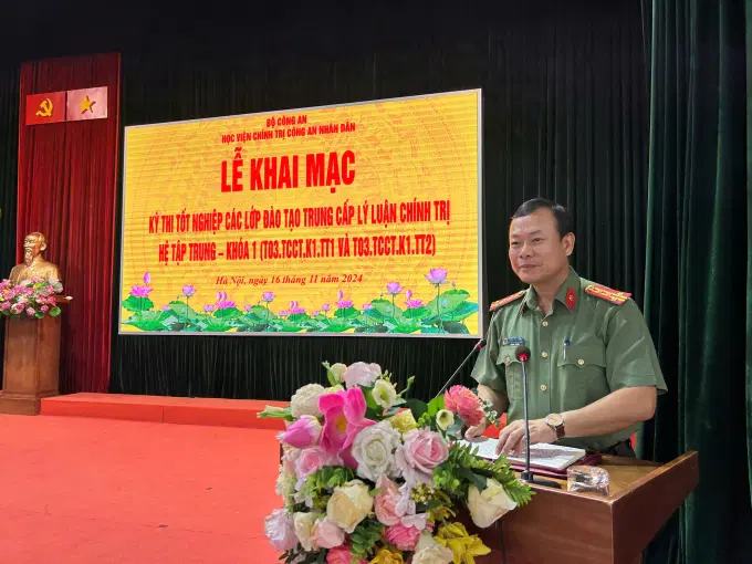 Thực hiện kế hoạch của Học viện Chính trị CAND về việc tổ chức thi tốt nghiệp cho học viên Lớp đào tạo trung cấp lý luận chính trị, hệ tập trung, Khóa 1 (Lớp T03.TCCT.K1.TT1 và TT2), sáng ngày 16/11/2024, Học viện tổ chức Lễ Khai mạc kỳ thi tốt nghiệp cho học viên hai lớp.
