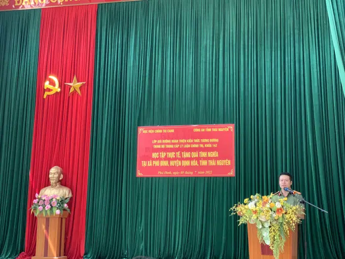 Ngày 05/7/2022, Học viện Chính trị Công an nhân dân tổ chức cho học viên Lớp bồi dưỡng hoàn thiện kiến thức tương đương trình độ Trung cấp lý luận chính trị, Khóa 142 đi học tập thực tế, tặng quà tình nghĩa tại xã Phú Đình, huyện Định Hóa, tỉnh Thái Nguyên. Thừa ủy quyền của Ban Giám đốc Học viện, đồng chí Trung tá Nguyễn Đình Thi, Phó Trưởng phòng Phòng Quản lý đào tạo và bồi dưỡng nâng cao làm Trưởng đoàn. Tham gia Đoàn còn có các đồng chí cán bộ Phòng Quản lý đào tạo và bồi dưỡng nâng cao, Phòng Quản lý học viên và toàn thể học viên của lớp bồi dưỡng.