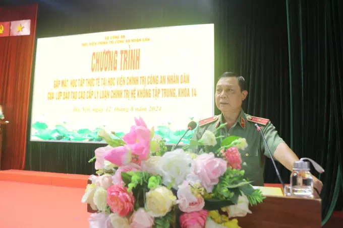 Thay mặt Đảng ủy, Ban Giám đốc Học viện, đồng chí Thiếu tướng, TS Nguyễn Như Lôi chào mừng tập thể học viên lớp đào tạo trình độ cao cấp lý luận chính trị hệ không tập trung khóa 14, mở tại Trường Đại học An ninh Nhân dân về thăm, học tập thực tế tại Học viện. Đồng chí Phó Giám đốc Học viện khẳng định học tập, nghiên cứu thực tế là nội dung quan trọng trong chương trình đào tạo trình độ cao cấp lý luận chính trị, giúp học viên có cơ hội được gắn kết giữa học với hành, giữa lý luận và thực tiễn để nâng cao nhận thức, trình độ, đáp ứng yêu cầu của chương trình đào tạo. Tại buổi gặp mặt, các học viên đã được nghe đồng chí Phó Giám đốc Học viện giới thiệu tới về truyền thống, lịch sử, chức năng, nhiệm vụ của Học viện; những kết quả trong các mặt công tác của Học viện thời gian vừa qua và phương hướng phát triển trong thời gian tới; kết quả và kinh nghiệm trong tổ chức thực hiện Nghị quyết số 12-NQ/TW, ngày 16/3/2022 của Bộ Chính trị về "Đẩy mạnh xây dựng lực lượng CAND thật sự trong sạch, vững mạnh, chính quy, tinh nhuệ, hiện đại, đáp ứng yêu cầu, nhiệm vụ trong tình hình mới". Thông qua các nội dung trên, đồng chí Thiếu tướng, TS Nguyễn Như Lôi hy vọng mỗi học viên lớp học sẽ củng cố, bồi đắp thêm niềm tự hào, vinh dự là học viên dưới mái trường Đảng của lực lượng Công an Nhân dân.
