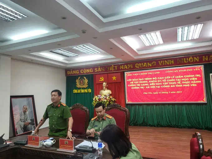 Theo chương trình làm việc, chiều ngày 31/5/2023, học viên lớp học nghe báo cáo thực tế, trao đổi kinh nghiệm tại Công an tỉnh Phú Yên. Tham dự buổi làm việc có đồng chí Đại tá Nguyễn Thái Hoàng, Ủy viên Ban Thường vụ Đảng ủy, Phó Giám đốc Công an tỉnh Phú Yên và đại diện lãnh đạo Phòng PX01, PX03, PV01 của Công an tỉnh.