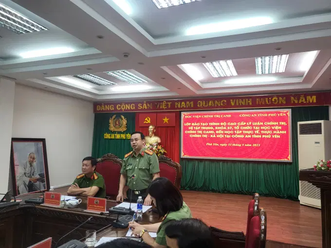 Phát biểu tại buổi học tập thực tế, đồng chí Đại tá Nguyễn Thái Hoàng, Phó Giám đốc Công an tỉnh Phú Yên phát biểu chào mừng và cảm ơn Học viện Chính trị Công an nhân dân đã chọn tỉnh Phú Yên là điểm đến để tổ chức cho lớp học tập thực tế, thực hành chính trị - xã hội cho học viên hệ đào tạo trình độ cao cấp lý luận chính trị do Học viện tổ chức. Đồng chí đã giới thiệu khái quát về đặc điểm tình hình kinh tế - chính trị, trật tự - an toàn xã hội của Công an tỉnh Phú Yên đồng thời chỉ đạo, phân công đại diện lãnh đạo các đơn vị chức năng báo cáo thực tế tại buổi làm việc, tập trung vào làm rõ kinh nghiệm lãnh đạo, chỉ đạo, quản lý và tổ chức thực hiện các mặt công tác của Công an tỉnh trên các lĩnh vực: Công tác tham mưu, xây dựng Đảng, xây dựng lực lượng, xây dựng phong trào toàn dân bảo vệ an ninh Tổ quốc, công tác dân vận trên địa bàn; công tác tổ chức cán bộ; hoạt động phối hợp giữa các lực lượng, các cơ quan, ban ngành, đơn vị trong việc thực hiện nhiệm vụ chính trị của đơn vị; thực hiện quản lý Nhà nước về an ninh trật tự, công tác đấu tranh phòng, chống các loại tội phạm, tệ nạn xã hội và các hành vi vi phạm pháp luật về an ninh trật tự trên địa bàn tỉnh và tham gia giải đáp thắc mắc của học viên lớp học xoay quanh các nội dung trên.