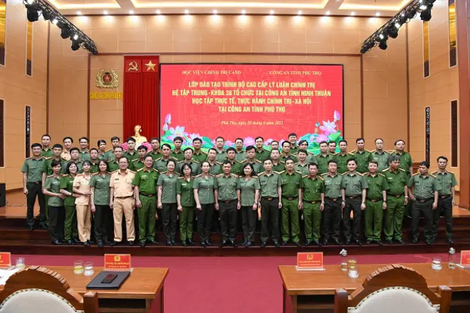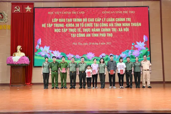 Thực hiện Kế hoạch giảng dạy - học tập lớp đào tạo trình độ Cao cấp lý luận chính trị, hệ tập trung - Khóa 38 mở tại Công an tỉnh Ninh Thuận, ngày 20/6/2023, Học viện tổ chức cho học viên đi học tập thực tế, thực hành chính trị - xã hội tại Công an tỉnh Phú Thọ. Đồng chí Thiếu tướng, TS Nguyễn Như Lôi, Ủy viên Ban thường vụ Đảng ủy, Phó Giám đốc Học viện làm Trưởng đoàn. Tham gia Đoàn công tác còn có đại diện lãnh đạo Phòng Quản lý đào tạo và bồi dưỡng nâng cao, Học viện Chính trị Công an nhân dân và toàn thể học viên lớp học.
