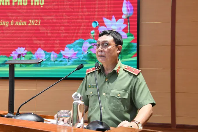 Đồng chí Đại tá Nguyễn Hữu Phước, Phó Giám đốc Công an tỉnh Phú Thọ phát biểu tại buổi làm việc