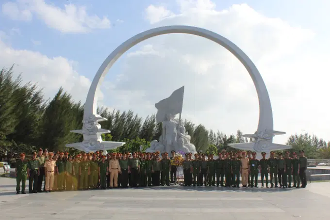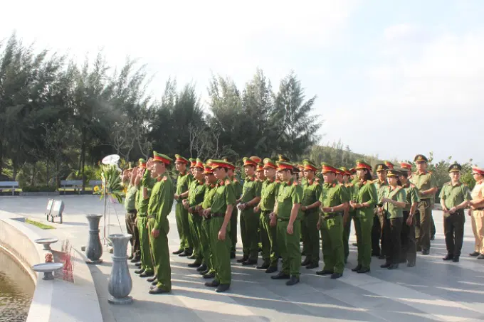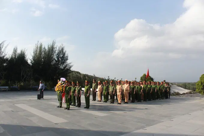 Đoàn công tác đã tổ chức Lễ chào cờ và dâng hoa tưởng niệm các anh hùng liệt sĩ tại Khu tưởng niệm Chiến sĩ Gạc Ma tại bán đảo Cam Ranh, tỉnh Khánh Hòa. Tại đây, Đoàn công tác đã rất xúc động, kính cẩn nghiêng mình tưởng nhớ đến các anh hùng, liệt sĩ cách đây hơn 30 năm, tại đảo Gạc Ma, thuộc quần đảo Trường Sa, 64 chiến sĩ Hải Quân Việt Nam đã hy sinh không tiếc máu xương, cống hiến sức trẻ, tình yêu, lòng trung thành để bảo vệ Tổ quốc, các chiến sĩ đã nắm chặt tay nhau tạo thành “Vòng tròn bất tử” quyết bảo vệ chủ quyền biển đảo đất nước. Trước anh linh các anh hùng liệt sĩ, lãnh đạo, cán bộ chiến sĩ Học viện Chính trị Công an nhân dân cùng học viên lớp học nguyện hứa sẽ tiếp tục nối tiếp truyền thống yêu nước, tuyệt đối trung thành với Đảng, Nhà nước và nhân dân, hết lòng phụng sự Tổ quốc, phụng sự nhân dân, hoàn thành xuất sắc nhiệm vụ bảo vệ an ninh trật tự mà Đảng, Nhà nước và nhân dân đã tin tưởng giao phó cho lực lượng Công an nhân dân.