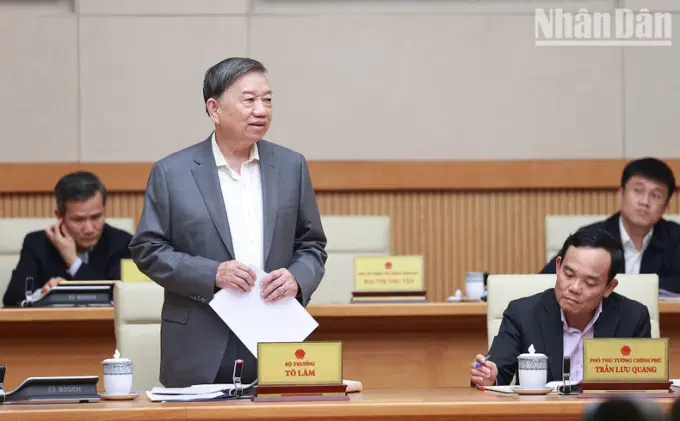 Bộ trưởng Công an Tô Lâm phát biểu. (Ảnh: TRẦN HẢI)
