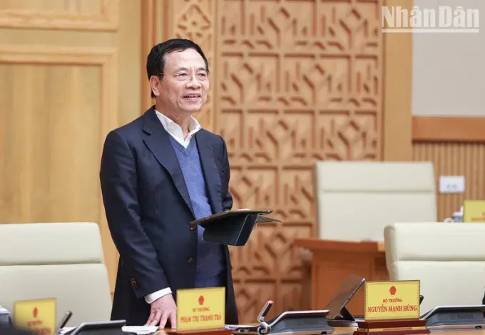 Bộ trưởng Thông tin và Truyền thông Nguyễn Mạnh Hùng phát biểu. (Ảnh: TRẦN HẢI)