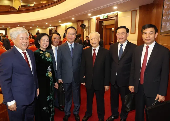 Tổng Bí thư Nguyễn Phú Trọng và các đồng chí lãnh đạo Đảng, Nhà nước cùng các đại biểu dự khai mạc Hội nghị Ban Chấp hành Trung ương Đảng giữa nhiệm kỳ khóa XIII_Ảnh: TTXVN