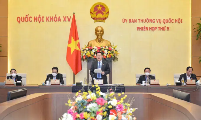 Chủ tịch Quốc hội Vương Đình Huệ phát biểu kết luận phiên họp thứ 5 của Ủy ban Thường vụ Quốc hội. Ảnh: QH