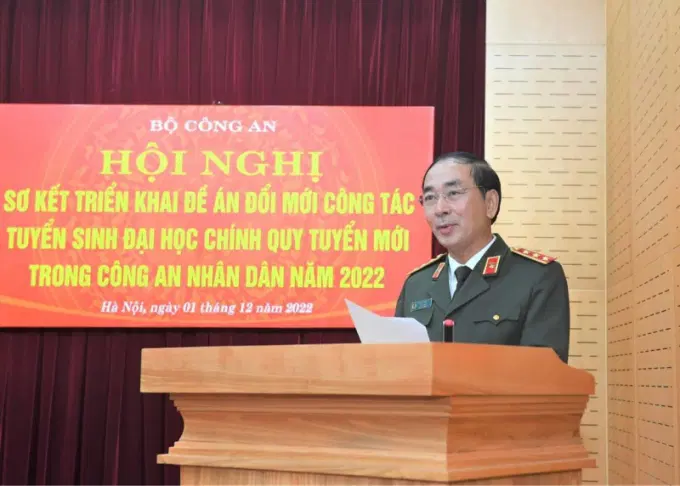 Chiều 1/12, tại Hà Nội, Bộ Công an đã tổ chức Hội nghị sơ kết triển khai Đề án đổi mới công tác tuyển sinh đại học chính quy tuyển mới trong CAND năm 2022. Thượng tướng, PGS.TS Trần Quốc Tỏ, Uỷ viên Trung ương Đảng, Thứ trưởng Bộ Công an chủ trì hội nghị.