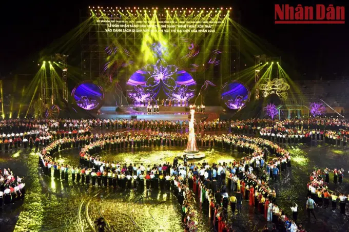 Tại buổi lễ, bà Pauline Tamesis, Điều phối viên thường trú Liên hợp quốc tại Việt Nam đã trao Bằng của UNESCO ghi danh Nghệ thuật Xòe Thái vào Danh sách Di sản văn hóa phi vật thể đại diện của nhân loại cho Bộ Văn hóa, Thể thao và Du lịch Việt Nam.