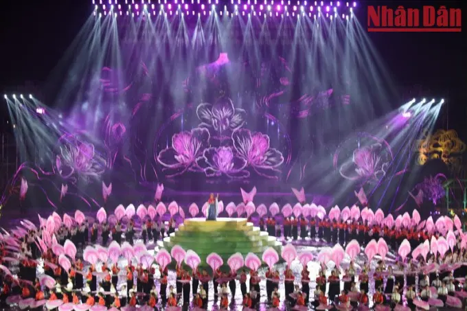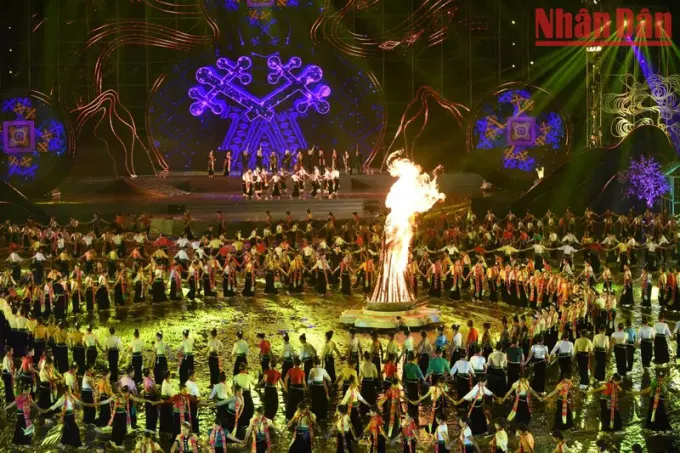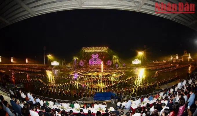 Trong khuôn khổ buổi lễ đã diễn ra Chương trình nghệ thuật “Xòe Thái - Tinh hoa miền di sản” với sự tham gia của trên 3.000 nghệ sĩ, diễn viên, nghệ nhân, trong đó, màn đại xòe diễn ra với quy mô 2.022 người.