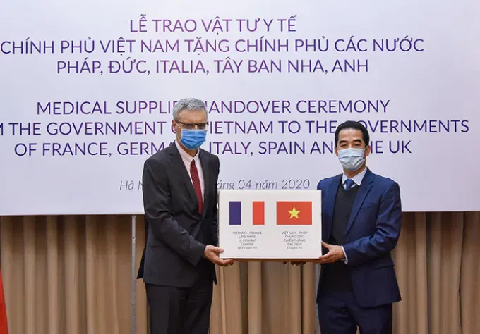 Thứ trưởng Ngoại giao Tô Anh Dũng trao hàng hỗ trợ phòng chống dịch Covid-19 của Chính phủ Việt Nam gửi tặng Chính phủ và nhân dân các nước Pháp, Đức, Italia, Tây Ban Nha và Anh ngày 07/4/2020