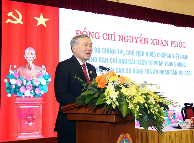 Chiều 15/10, Chủ tịch nước Nguyễn Xuân Phúc, Trưởng Ban Chỉ đạo Cải cách Tư pháp Trung ương làm việc với Ban Cán sự Đảng Tòa án nhân dân tối cao về một số công việc của tòa án để nâng cao chất lượng, hiệu quả hoạt động của tòa án các cấp phục vụ nhiệm vụ chính trị hiện nay.